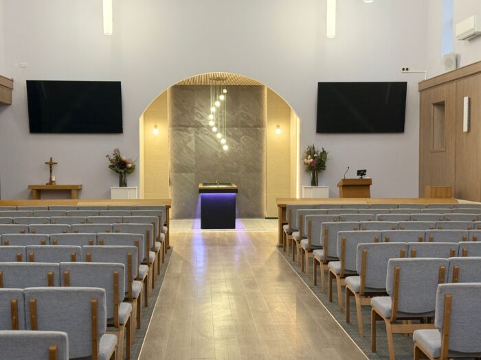 - Teyrngedau Gweledol – gall 2 sgrîn ddangos lluniau a fideo (mae angen eu cyflwyno o leiaf 72 awr ymlaen llaw – codir tâl ychwanegol)